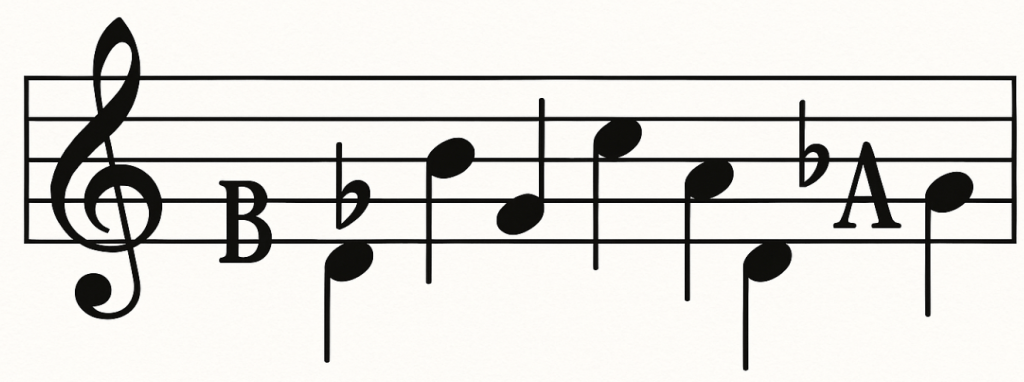 I probably should have told ChatGPT to include some incidentals, and to avoid simple progressions, because this is too easy. I typed in D-E-F-G-A-C-B.
